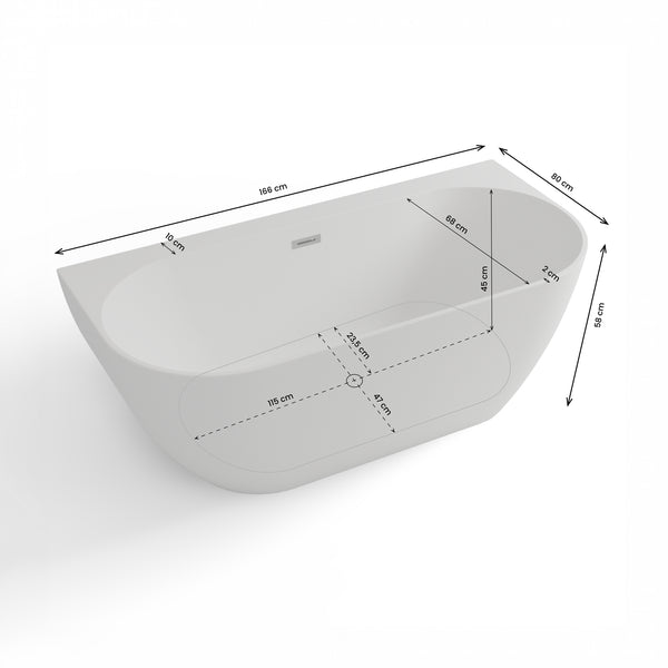 Baignoire semi-îlot murale Spring 166 blanche